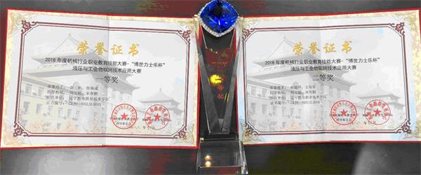 12月5日,由全國機(jī)械職業(yè)教育教學(xué)指導(dǎo)委員會、機(jī)械工業(yè)教育發(fā)展中心主辦,常州機(jī)電職業(yè)技術(shù)學(xué)院、北京天元啟力科技有限公司承辦的2018年“博世力士樂杯”液壓與工業(yè)物聯(lián)網(wǎng)技術(shù)應(yīng)用大賽在常州舉行,我院機(jī)械工程系學(xué)生張福成、張航獲一等獎;王傳軍、欒超群獲二等獎,指導(dǎo)教師劉文娟、宋壽鵬獲得“2018年度機(jī)械行業(yè)職業(yè)教育技能大賽優(yōu)秀指導(dǎo)教師”榮譽(yù)稱號。