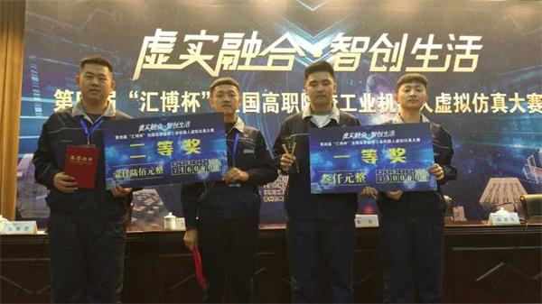 2018年12月27—28日,第四屆“匯博杯”全國高職院校工業(yè)機(jī)器人虛擬仿真大賽在常州機(jī)電學(xué)院舉辦,由我院教師王超和卞秀輝指導(dǎo)學(xué)生宋建輝、范佳鑫、肖征雷、劉瀟博組成兩支隊(duì)伍,榮獲工業(yè)機(jī)器人虛擬調(diào)試賽項(xiàng)一等獎與二等獎。