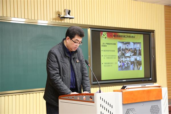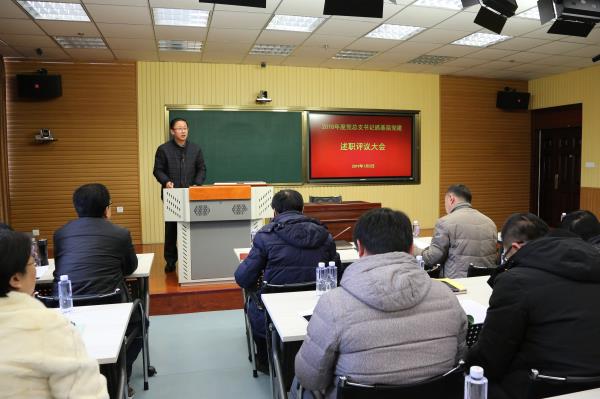 為認真學(xué)習(xí)貫徹習(xí)近平新時代中國特色社會主義思想和黨的十九大精神,落實全面從嚴治黨要求,進一步推動全面從嚴治黨向基層延伸,促進基層組織建設(shè)全面進步全面過硬,按照學(xué)院黨委統(tǒng)一部署,1月3日下午,在大學(xué)生素質(zhì)中心錄播室召開“2018年度黨總支書記抓基層黨建述職評議考核會議”,院黨委委員、黨務(wù)部門負責(zé)人、各黨總支書記、副書記及各黨支部書記共40余人參加會議,會議由學(xué)院黨委書記王忠誠主持。