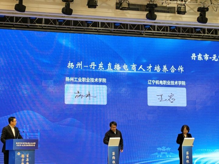 近日,揚(yáng)州市丹東商會(huì)成立大會(huì)暨丹東市-元寶區(qū)招商推介會(huì)在江蘇省揚(yáng)州市揚(yáng)州迎賓館隆重舉行。遼寧機(jī)電職業(yè)技術(shù)學(xué)院副校長(zhǎng)王巖與丹東市政府、丹東市企業(yè)代表共話區(qū)域經(jīng)濟(jì)合作新機(jī)遇,并于活動(dòng)期間代表我校與揚(yáng)州工業(yè)職業(yè)技術(shù)學(xué)院簽署《電商直播人才培養(yǎng)合作協(xié)議》。