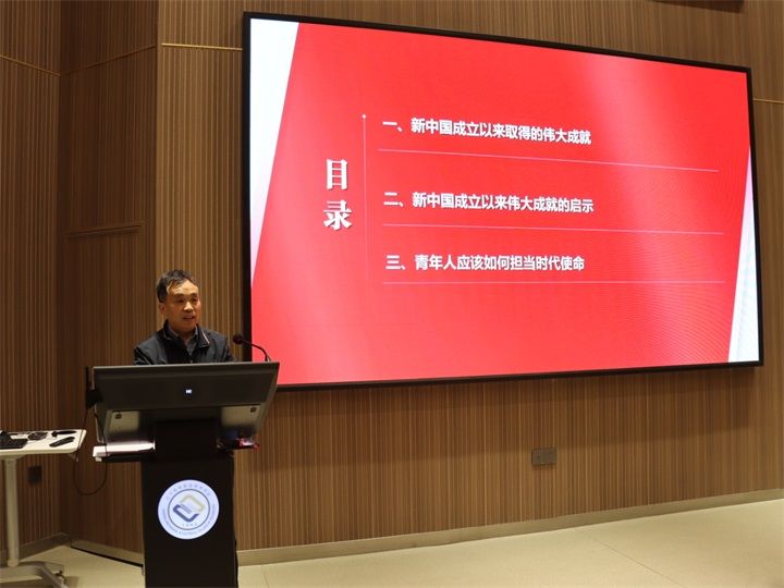 本次思政課在我們黨團(tuán)結(jié)帶領(lǐng)全國(guó)各族人民繪就的波瀾壯闊的歷史畫(huà)卷中開(kāi)始。段振云首先全面梳理了新中國(guó)成立以來(lái)取得的偉大成就,并系統(tǒng)總結(jié)了新中國(guó)成立以來(lái)偉大成就的五個(gè)必須的重大啟示。講授中,段振云勉勵(lì)同學(xué)們要踐行“厚德篤行”的校訓(xùn)精神,一是要保持學(xué)習(xí)熱情,多讀有字之書(shū)。不能滿足于碎片化信息、快餐化知識(shí),從前人的智慧結(jié)晶中加強(qiáng)專業(yè)技術(shù)學(xué)習(xí)、增強(qiáng)實(shí)踐操作本領(lǐng);二是要擴(kuò)大知識(shí)半徑,多讀無(wú)字之書(shū)。積極參加各類社會(huì)實(shí)踐與技能大賽,催生更多創(chuàng)新之花創(chuàng)造之果,從實(shí)踐中探索新途徑、找尋新方法。