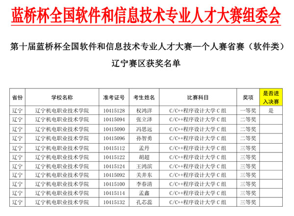 功夫不負有心人,在指導(dǎo)老師與參賽學(xué)生歷時半年的練習(xí)與準備下,終于取得了理想的成績,其中榮獲遼寧賽區(qū)一等獎的學(xué)生將代表遼寧省參加全國總決賽。