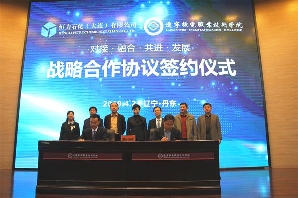 遼寧機電職業(yè)技術(shù)學(xué)院黨委書記王忠誠、恒力石化(大連)有限公司副總經(jīng)理葉芳禮共同簽署了戰(zhàn)略合作協(xié)議。恒力石化人事部經(jīng)理韓玲、學(xué)院黨委副書記陳秋鵬及相關(guān)與會領(lǐng)導(dǎo)監(jiān)簽。