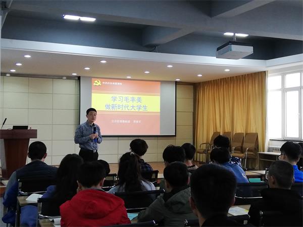 本期名家講堂邀請到的主講嘉賓是來自中共丹東市委黨校公共管理教研部主任羅政軍老師。羅老師作為毛豐美干部學(xué)校的宣講老師,為同學(xué)們講述了毛豐美同志一生為民的光榮事跡。羅老師用一幅幅圖片為同學(xué)們展示了大梨樹村在毛書記的帶領(lǐng)下發(fā)生的翻天覆地的變化。同學(xué)們聚精會神地聆聽,真切地感受到“干”字精神的重要意義。同時,羅老師結(jié)合新時代大學(xué)生的實際,鼓勵同學(xué)們懷揣美好的夢想,堅定正確的理想信念,發(fā)揚“干”字精神,刻苦學(xué)習(xí),不負(fù)青春,書寫美好的人生。