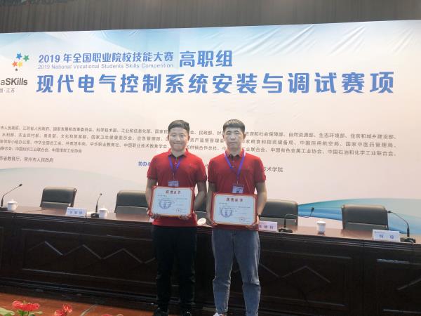 2019年全國職業(yè)院校技能大賽現(xiàn)代電氣控制系統(tǒng)安裝與調(diào)試賽項(xiàng),于5月18日-5月19日在常州機(jī)電職業(yè)技術(shù)學(xué)院舉行,來自全國31個(gè)省、市、自治區(qū)的104支代表隊(duì)參加比賽。我院自動(dòng)控制工程系教師石敬波、王奕飛指導(dǎo)的學(xué)生吳凡、王俊博組成的代表隊(duì)首次參加比賽。比賽過程中,我院兩名參賽選手,面對(duì)經(jīng)驗(yàn)不足,現(xiàn)場突發(fā)狀況,設(shè)備故障等問題,沉著冷靜,靈活應(yīng)對(duì),堅(jiān)持不懈,最終榮獲2019年全國職業(yè)院校技能大賽現(xiàn)代電氣控制系統(tǒng)安裝與調(diào)試賽項(xiàng)三等獎(jiǎng)。