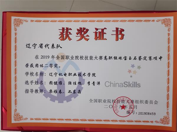 5月29日,由北方黃金珠寶學(xué)院欒雅春和乜東晶老師指導(dǎo)的陸佳旭、李青洋、賴健維在2019年全國職業(yè)院校技能大賽高職組“珠寶玉石鑒定”賽項中榮獲二等獎。