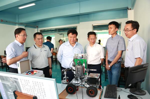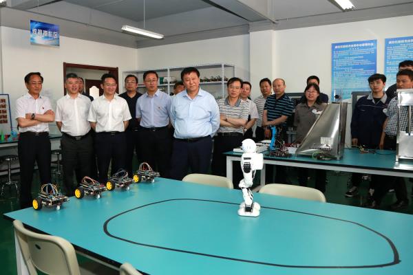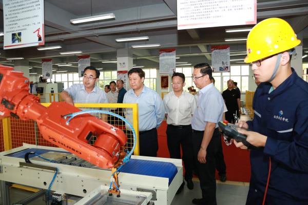 唐國華一行視察了我院校園文化長廊、圖書館、學生食堂,并深入大學生宿舍與學生交流,重點視察了學院智能制造生產(chǎn)性實訓基地、創(chuàng)新創(chuàng)業(yè)學院、機器人創(chuàng)新實踐中心、柔性制造創(chuàng)新實訓中心和智能檢測技術、自動化技術、虛擬儀器技術等3個校企協(xié)同創(chuàng)新中心,并與現(xiàn)場的師生進行了親切的交流。唐國華對學院近年來的高質量發(fā)展給予了肯定,對學院發(fā)展定位給予了高度評價,對學院力爭“雙高”的全院教職工的干勁給予了高度的贊揚。