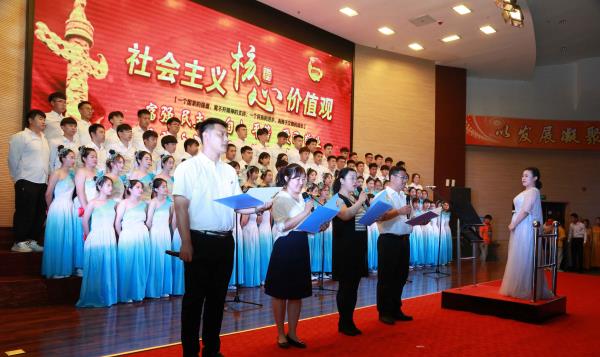為紀(jì)念五四運(yùn)動100周年、迎接新中國成立70周年,激發(fā)廣大團(tuán)員青年的愛國熱情,6月28日18:00,我院在儀表園校區(qū)多功能廳舉辦“青春心向黨 建功新時代”向新中國成立70周年獻(xiàn)禮合唱比賽。學(xué)院黨委書記王忠誠、黨委副書記兼紀(jì)委書記陳秋鵬、組織人事部部長寧秋平、黨政辦公室主任柴世強(qiáng)、黨委宣傳部部長梅敬、學(xué)生處處長吳志丹、大學(xué)生素質(zhì)教育中心主任劉麗麗、工會副主席林德峰、團(tuán)委副書記韓麗娜、大學(xué)生素質(zhì)教育中心公共藝術(shù)課程組組長于德媛出席比賽現(xiàn)場并擔(dān)任評委。同時,各系(院)領(lǐng)導(dǎo)、老師及學(xué)生500余人一同觀看本次比賽。