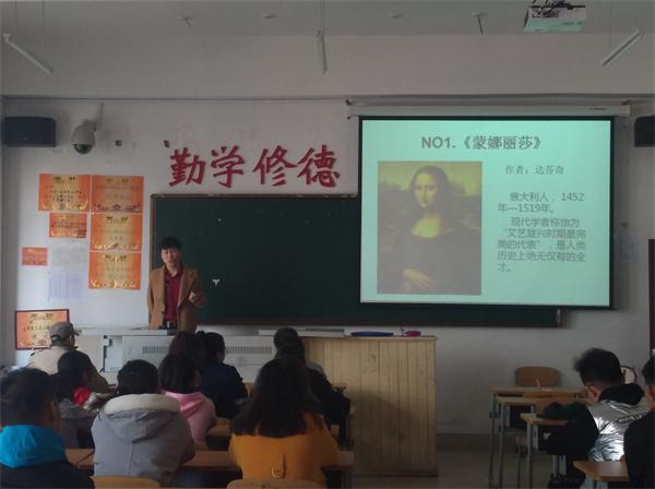 本次活動(dòng)嘉賓主要通過講述《蒙娜麗莎》、《吶喊》、《向日葵》、《夢(mèng)》、《睡蓮》、《永恒的記憶》等世界名畫的作者達(dá)芬奇、蒙克、梵高、畢加索、莫奈、達(dá)利等大師的一些鮮為人知的故事,使學(xué)生了解他們創(chuàng)作的艱辛和生活的坎坷。同時(shí)解讀他們獨(dú)特的畫風(fēng)和天才的創(chuàng)作,以使我們體會(huì)世界名畫精髓之所在,從而把握西方藝術(shù)所蘊(yùn)含的人文精神。