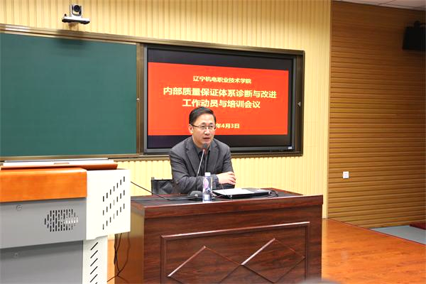 為全面貫徹落實《遼寧省教育廳辦公室關(guān)于印發(fā)遼寧省高等職業(yè)院校內(nèi)部質(zhì)量保證體系診斷與改進(jìn)實施方案的通知》精神,2018年4月3日13:30在大學(xué)生素質(zhì)教育中心四樓錄播室召開了學(xué)院內(nèi)部質(zhì)量保證體系診斷與改進(jìn)工作動員與培訓(xùn)會議。學(xué)院黨委書記王忠誠、黨委副書記陳秋鵬、副院長趙景暉、副院長佟海軍及學(xué)院全體中層干部參加了本次會議,會議由績效管理部、教育質(zhì)量管理辦公室主任王振家主持。