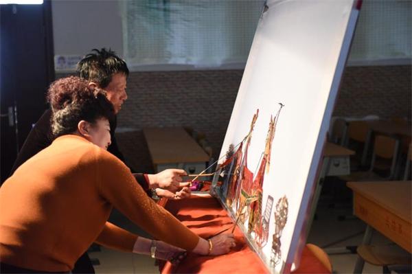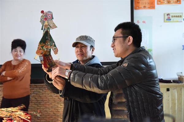 師生嘗試寬甸八河川皮影戲表演