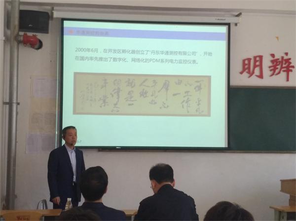 劉海波先生從他本人及華通測(cè)控的成長(zhǎng)歷程談起,不但為同學(xué)們介紹了智能化測(cè)控產(chǎn)品生產(chǎn)及自動(dòng)化監(jiān)控軟件研發(fā)的前沿知識(shí),還分享了多年來(lái)在工作中孜孜不倦、精益求精、不斷超越的奮斗品質(zhì)。用真實(shí)的故事感召同學(xué)們從點(diǎn)滴做起,做好的自己,把平凡變成偉大,夢(mèng)想才能變成現(xiàn)實(shí)。