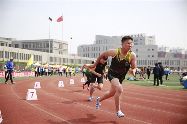 9:00各賽項(xiàng)比賽正式開始,運(yùn)動員在賽場上努力拼搏,為了各自的榮譽(yù)而戰(zhàn),你追我趕,奮勇向前,充分體現(xiàn)了奧林匹克精神,為了“更高、更快、更強(qiáng)”的目標(biāo)奔跑著。場下更是一片歡騰,各院系拉拉隊(duì)都賣足了力氣,大聲的為各自的運(yùn)動員加油吶喊助威,好象聲音小了就會輸?shù)舯荣愐话?,鑼鼓齊鳴,喊聲震天,氣氛熱烈。教師運(yùn)動員同樣不甘示弱,雖然有的老師年齡比較大,但拼搏精神一點(diǎn)也不輸給年青同學(xué),他們都認(rèn)真完成比賽,為同學(xué)們做了好榜樣。老師、同學(xué)都享受著運(yùn)動帶來的歡樂與激情。本次運(yùn)動會項(xiàng)目上進(jìn)行了一定調(diào)整,更加緊湊有趣,贏得了師生好評。
