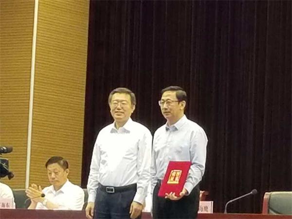丹東市委書記葛海鷹為王忠誠教授頒發(fā)證書并合影