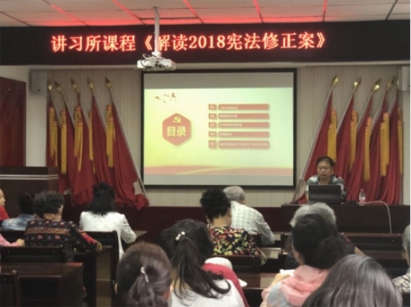 6月13日上午,思政部周家興老師應邀到丹東市錦繡社區(qū)講習所為黨員代表開展“2018憲法修正案”宣講活動。