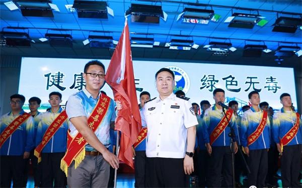 副市長孟煒向我院授“丹東禁毒志愿者”旗幟