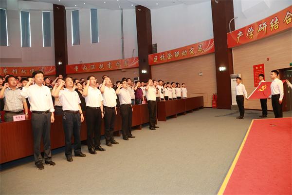 大會在雄壯的國歌中拉開帷幕。黨委委員、組織人事部部長寧秋平領誓,帶領新黨員入黨宣誓、老黨員重溫入黨誓詞。
