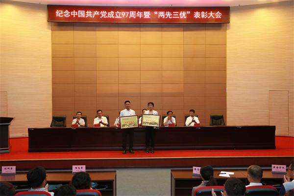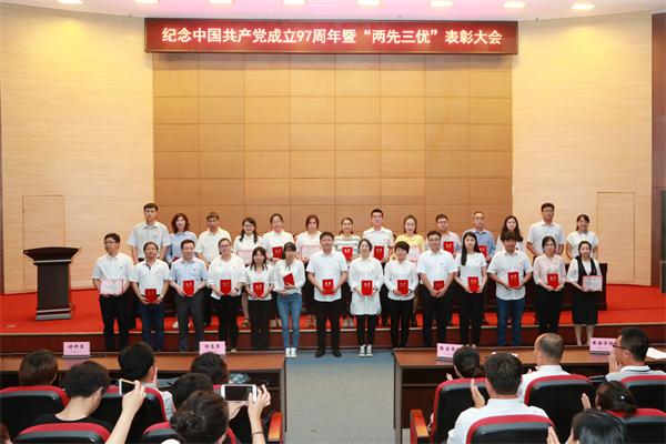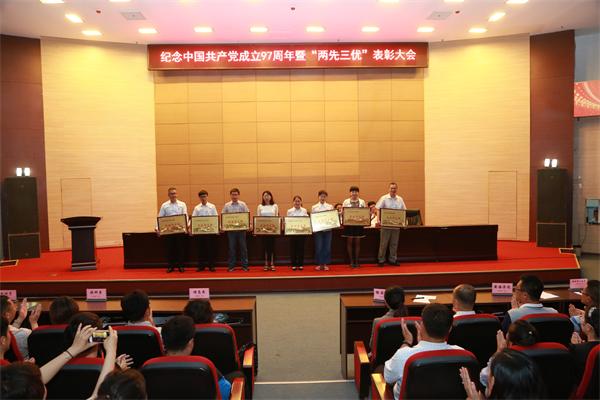 黨委副書記兼紀委書記陳秋鵬宣讀《學院黨委關于表彰2017—2018年度“兩先三優(yōu)”的決定》,有2個先進黨總支部、8個先進黨支部、28名優(yōu)秀共產黨員、14名優(yōu)秀黨務工作者、7名優(yōu)秀大學生黨員受到表彰。學院黨委領導為受表彰的先進黨組織和優(yōu)秀個人頒發(fā)了牌匾和證書。