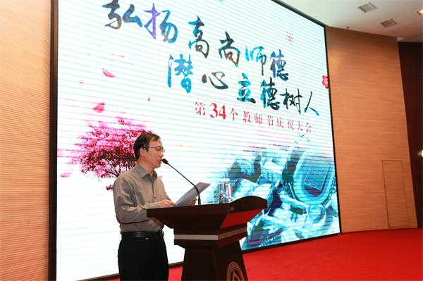 王忠誠(chéng)書記指出,教師是立教之本、興教之源,承擔(dān)著傳播知識(shí)、傳播思想、傳播真理的歷史使命,肩負(fù)著塑造靈魂、塑造生命、塑造人的時(shí)代重任。肩負(fù)的是傳承與發(fā)展的重任,托起的是歷史與未來(lái)的希望,“責(zé)任重大,使命光榮”。為此,他提出四點(diǎn)希望:一要關(guān)愛(ài)學(xué)生,樂(lè)于奉獻(xiàn)有厚德,做一名深受學(xué)生愛(ài)戴的好老師;二要立德樹人,身正為范有正德,做一名引領(lǐng)學(xué)生成長(zhǎng)的好老師;三要積極進(jìn)取,開拓創(chuàng)新有勇德,做一名勇于創(chuàng)新實(shí)干的好老師;四要精益求精,終身學(xué)習(xí)有睿德,做一名業(yè)務(wù)出色、樂(lè)觀向上的好老師。