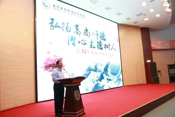 9月10日下午,在第34個(gè)教師節(jié)來(lái)臨之際,學(xué)院2018年教師節(jié)慶祝大會(huì)在大學(xué)生素質(zhì)中心報(bào)告廳隆重召開。會(huì)議由黨委副書記、紀(jì)委書記陳秋鵬主持,學(xué)院領(lǐng)導(dǎo)班子、全體教職工參加大會(huì)。