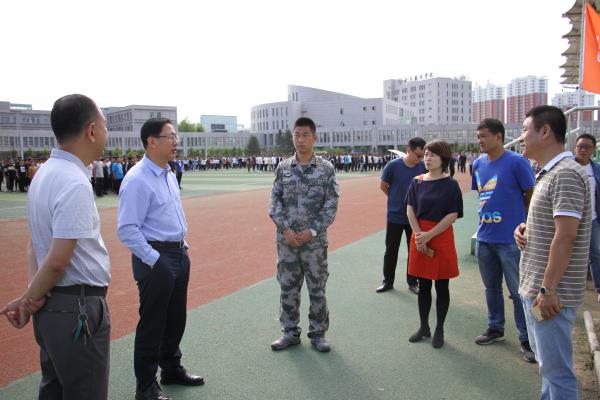 9月18日上午,我院黨委書記王忠誠、黨委副書記陳秋鵬、學(xué)生處處長吳志丹、黨委宣傳部部長梅敬、學(xué)生處副處長西志玲等來到儀表園校區(qū)操場和浪頭校區(qū)操場慰問正在軍訓(xùn)的教官和新生。
