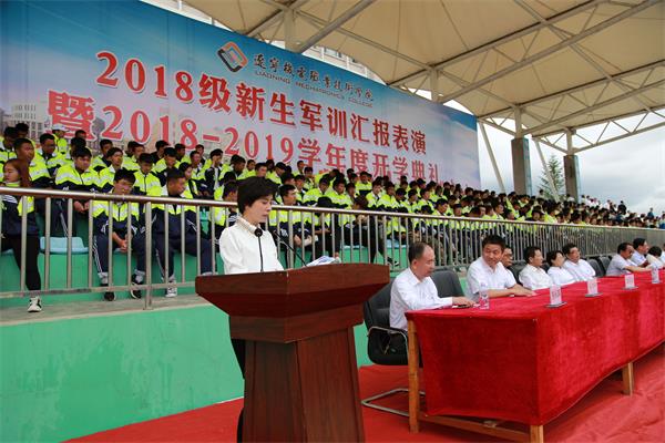軍訓(xùn)匯報(bào)表演后,隆重舉行了2018—2019學(xué)年度開學(xué)典禮。開學(xué)典禮由學(xué)院黨委副書記、紀(jì)委書記陳秋鵬主持。會(huì)上,教師代表于曉云、在校生代表自控系李林杰同學(xué)、新生代表華孚儀表學(xué)院王雨桐同學(xué)先后上臺(tái)講話、發(fā)言。副院長(zhǎng)趙景暉公布2017—2018學(xué)年度教師參加技能大賽獲獎(jiǎng)名單并進(jìn)行了頒獎(jiǎng);教務(wù)處處長(zhǎng)潘維琴公布2017—2018學(xué)年度學(xué)生參加技能大賽獲獎(jiǎng)名單并進(jìn)行了頒獎(jiǎng);學(xué)生處副處長(zhǎng)西志玲公布2017—2018學(xué)年度院“先進(jìn)班集體”、“先進(jìn)團(tuán)支部”等名單并進(jìn)行了頒獎(jiǎng)。學(xué)生處處長(zhǎng)吳志丹公布2018新生班級(jí)班導(dǎo)師名單,學(xué)院領(lǐng)導(dǎo)為70名班導(dǎo)師頒發(fā)了聘書。