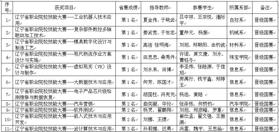 日前,在省教育廳主辦的2017年遼寧省職業(yè)院校(高職組)技能大賽中,我院取得工業(yè)機器人技術應用等7個賽項第一名的優(yōu)異成績。