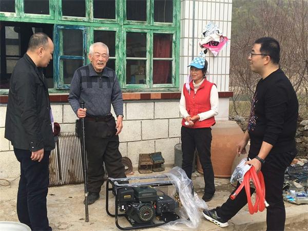 扶貧隊(duì)把大型農(nóng)藥噴灑機(jī)送到殘疾老人任福珍老人家中