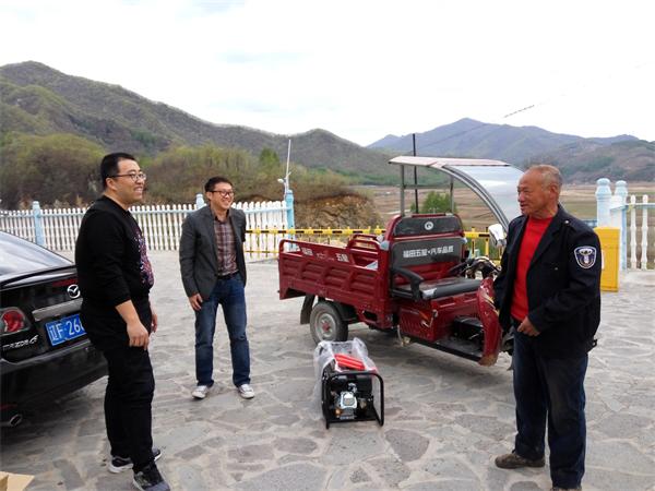 在之前的工作中,扶貧工作隊(duì)已經(jīng)確立了分別幫助川溝村10戶建檔立卡戶發(fā)展大榛子、林下參、養(yǎng)蜂、養(yǎng)牛、養(yǎng)雞等多個(gè)扶貧項(xiàng)目。在此行中,扶貧隊(duì)首先到寬甸縣城為大榛子種植戶采購(gòu)了大型農(nóng)藥噴灑機(jī)4臺(tái),其噴射距離可達(dá)到300米,同時(shí),為一個(gè)有少量大榛子種植的建檔立卡戶采購(gòu)了普通農(nóng)藥噴灑機(jī)1臺(tái)。
