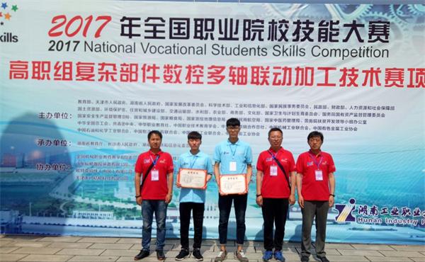 近日,全國職業(yè)院校技能大賽高職組“復(fù)雜部件數(shù)控多軸聯(lián)動(dòng)加工技術(shù)”賽項(xiàng)在湖南工業(yè)職業(yè)技術(shù)學(xué)院隆重舉行。該賽項(xiàng)由教育部聯(lián)合湖南省人民政府、國家發(fā)改委、科技部、工信部、人社部、國家旅游局等36個(gè)部門(單位)共同舉辦,來自全國的27支代表隊(duì)的56名選手參加了本次比賽。機(jī)械工程系姜云寬、于世忠兩位指導(dǎo)老師帶領(lǐng)董仲元、楊振二名同學(xué)參賽并榮獲三等獎(jiǎng)。