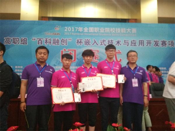 我院信息工程系嵌入式技術(shù)與應(yīng)用專業(yè)指導(dǎo)教師鄒士喜、龐春輝、劉娜、王捷帶領(lǐng)15571班崔仕孟、翟文強(qiáng)、王振滿參加了此次競(jìng)賽,同時(shí)也是代表遼寧省參加此次國(guó)家大賽。針對(duì)此次國(guó)賽,指導(dǎo)教師認(rèn)真分析賽況,解讀規(guī)程、模擬訓(xùn)練,犧牲所有的休息時(shí)間,選手們精心備賽,刻苦學(xué)習(xí),經(jīng)過(guò)12個(gè)小時(shí)的努力拼搏,在此次大賽中榮獲了團(tuán)體三等獎(jiǎng),充分展示了我院學(xué)生在嵌入式產(chǎn)品開(kāi)發(fā)與應(yīng)用等方面的專業(yè)技能,展現(xiàn)了我院師生的自信與風(fēng)采。