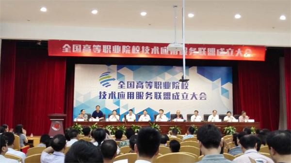 我院黨委書記王忠誠(chéng)教授(臺(tái)上左二)出席全國(guó)高等職業(yè)院校技術(shù)應(yīng)用服務(wù)聯(lián)盟成立大會(huì)