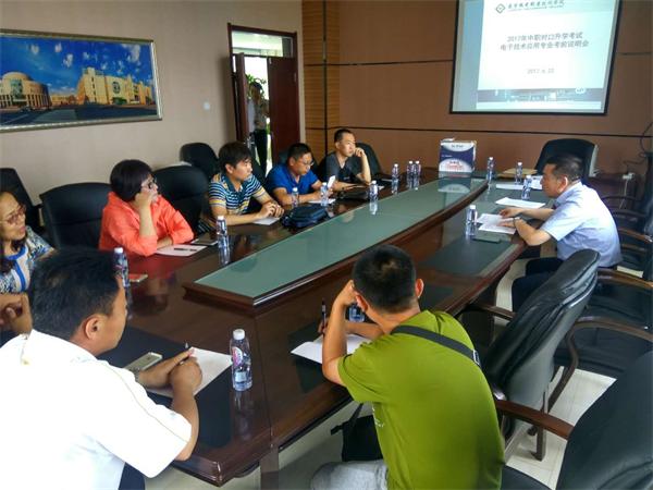 6月22日下午14點(diǎn),在學(xué)院行政中心A902室教務(wù)處組織召開2017年遼寧省中職對口升學(xué)電子技術(shù)應(yīng)用專業(yè)考前說明會,參會的有承辦此次考試的華孚儀表學(xué)院繳瑞山院長、電子信息工程技術(shù)課程組長李福軍老師以及來自省內(nèi)大連電子學(xué)校等7所中職生源學(xué)校的負(fù)責(zé)人。會議由教務(wù)王振家處長主持,王處長向各生源學(xué)校傳達(dá)了2017年遼寧省中職對口升學(xué)考試的相關(guān)規(guī)定及要求,并公布了2017年遼寧省中職對口升學(xué)電子技術(shù)應(yīng)用專業(yè)的專業(yè)綜合課和技能考核的考試時間和地點(diǎn),教務(wù)處現(xiàn)場將考生的準(zhǔn)考證發(fā)放給生源學(xué)校負(fù)責(zé)人,而后華孚儀表學(xué)院繳瑞山院長及李福軍老師對技能考核相關(guān)儀器的型號進(jìn)行說明。為保證考試順利進(jìn)行,王處長希望各生源學(xué)校要高度重視考試工作,建議派專人帶隊參加考試。會后,生源學(xué)校負(fù)責(zé)人實地觀摩了專業(yè)綜合課考場和技能考核考場。
