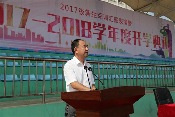 軍訓(xùn)匯報(bào)表演后,隆重舉行了2017—2018學(xué)年度開(kāi)學(xué)典禮,學(xué)院黨委書(shū)記王忠誠(chéng)教授作了重要講話。首先,王書(shū)記代表全院師生員工,對(duì)2017級(jí)新同學(xué)加入機(jī)電學(xué)院大家庭表示最熱烈的歡迎,并對(duì)我院52年的建校歷史進(jìn)行了總結(jié)和回顧,對(duì)我院辦學(xué)特點(diǎn)、取得成績(jī)及畢業(yè)生就業(yè)等方面做了重點(diǎn)介紹,展示了學(xué)院發(fā)展的美好前景和強(qiáng)大力量。同時(shí),王書(shū)記對(duì)新同學(xué)們提出四點(diǎn)要求和希望:一是希望同學(xué)們能夠懷揣夢(mèng)想,敢于擔(dān)當(dāng);二是希望同學(xué)們能夠以學(xué)修身,勤于讀書(shū);三是希望同學(xué)們能夠常勵(lì)常思,善于自?。凰氖窍M瑢W(xué)們能夠提高本領(lǐng),勇于實(shí)踐。天地?zé)o邊江海闊,青春笑傲正揚(yáng)帆!最后,王書(shū)記祝愿大家在機(jī)電學(xué)院的生活行于充實(shí),收于精彩。