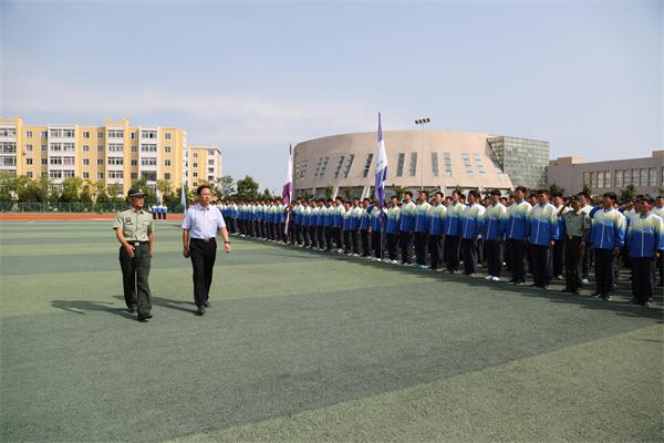 黨委書(shū)記王忠誠(chéng)在分列式總指揮的陪同下檢閱方陣