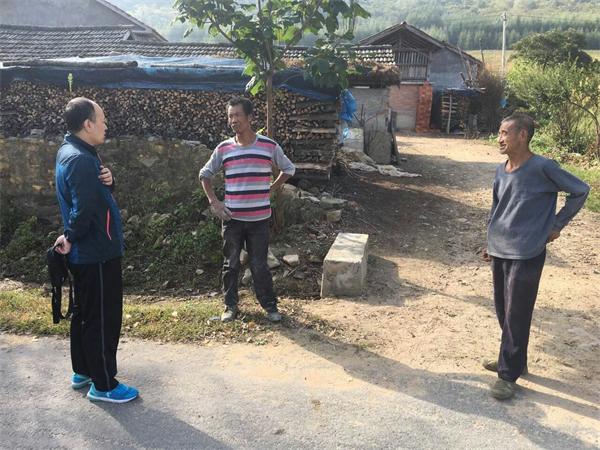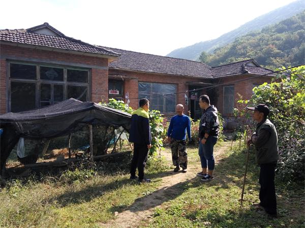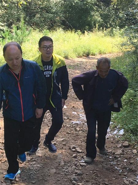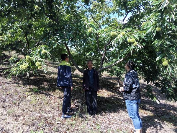 扶貧隊與老黨員關(guān)成全上山查看其板栗項目發(fā)展情況