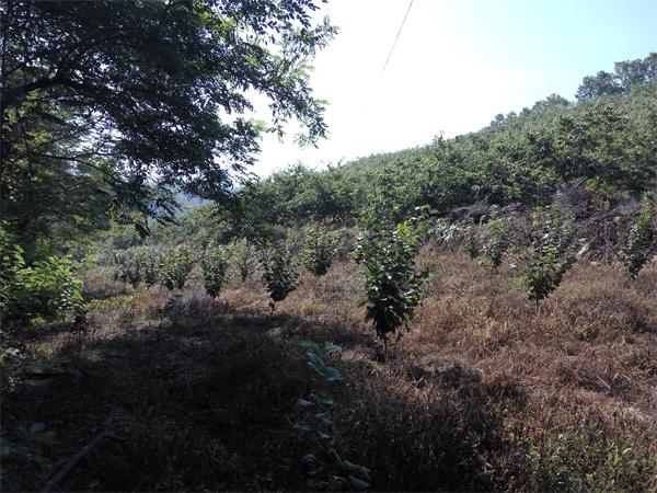 扶貧隊幫扶老黨員關(guān)成全種植的幾畝大榛子長勢良好