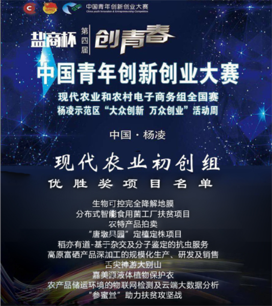 近日,由共青團(tuán)中央、中央網(wǎng)信辦、工業(yè)和信息化部、人力資源社會(huì)保障部、農(nóng)業(yè)部、商務(wù)部、國(guó)務(wù)院扶貧辦、全國(guó)學(xué)聯(lián)、山西省人民政府、浙江省人民政府、江西省人民政府共同主辦的2017年“鹽商杯”第四屆“創(chuàng)青春”中國(guó)青年創(chuàng)新創(chuàng)業(yè)大賽現(xiàn)代農(nóng)業(yè)和農(nóng)村電子商務(wù)組全國(guó)賽在西安楊凌舉行。本次比賽共設(shè)金獎(jiǎng)1個(gè),銀獎(jiǎng)3個(gè),銅獎(jiǎng)6個(gè),優(yōu)勝獎(jiǎng)10個(gè)。來(lái)自全國(guó)各省的150支代表隊(duì)300名選手參加了此次比賽。