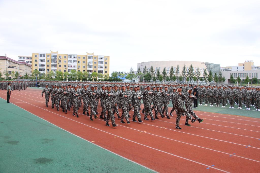 軍訓(xùn)匯報(bào)表演由學(xué)生處處長吳志丹主持。軍訓(xùn)匯報(bào)表演在莊嚴(yán)的國歌中拉開了序幕,伴隨著雄壯的樂曲,2900余名新生,30個(gè)方陣,邁著整齊的步伐依次經(jīng)過主席臺前,他們步伐堅(jiān)定、隊(duì)形整齊、口號嘹亮、自信昂揚(yáng),展現(xiàn)著十天以來的訓(xùn)練成果,也彰顯了2019級新生艱苦訓(xùn)練的意志和青春蓬勃的朝氣。接下來,學(xué)生處副處長西志玲公布2019級新生軍訓(xùn)表獎(jiǎng)名單并進(jìn)行頒獎(jiǎng)。頒獎(jiǎng)結(jié)束,合成第191旅管理科科長劉紅喜講話,他在講話中充分肯定了本次軍訓(xùn)的成果,鼓勵(lì)同學(xué)們繼續(xù)開拓進(jìn)取、勇于挑戰(zhàn),不斷提升自身的綜合素質(zhì),祝福大家在未來的學(xué)習(xí)和生活中取得更大的成績,祝愿學(xué)校與部隊(duì)攜手共進(jìn)、共創(chuàng)佳績。最后,學(xué)院黨委副書記、紀(jì)委書記陳秋鵬作了講話,他首先對65735部隊(duì)31名教官表示衷心的感謝,對2019級新同學(xué)表達(dá)殷切的希望,希望同學(xué)們以軍訓(xùn)為契機(jī),秉承“厚德 篤行”的校訓(xùn),繼續(xù)發(fā)揚(yáng)“特別能吃苦、特別能奉獻(xiàn)、特別能戰(zhàn)斗、特別能創(chuàng)新”的學(xué)院精神,投入到今后的學(xué)習(xí)和生活中去,刻苦學(xué)習(xí),勇于探索,積極實(shí)踐,努力掌握現(xiàn)代科學(xué)文化知識和專業(yè)技能,使自己成為中國特色社會主義事業(yè)的合格建設(shè)者和可靠接班人。