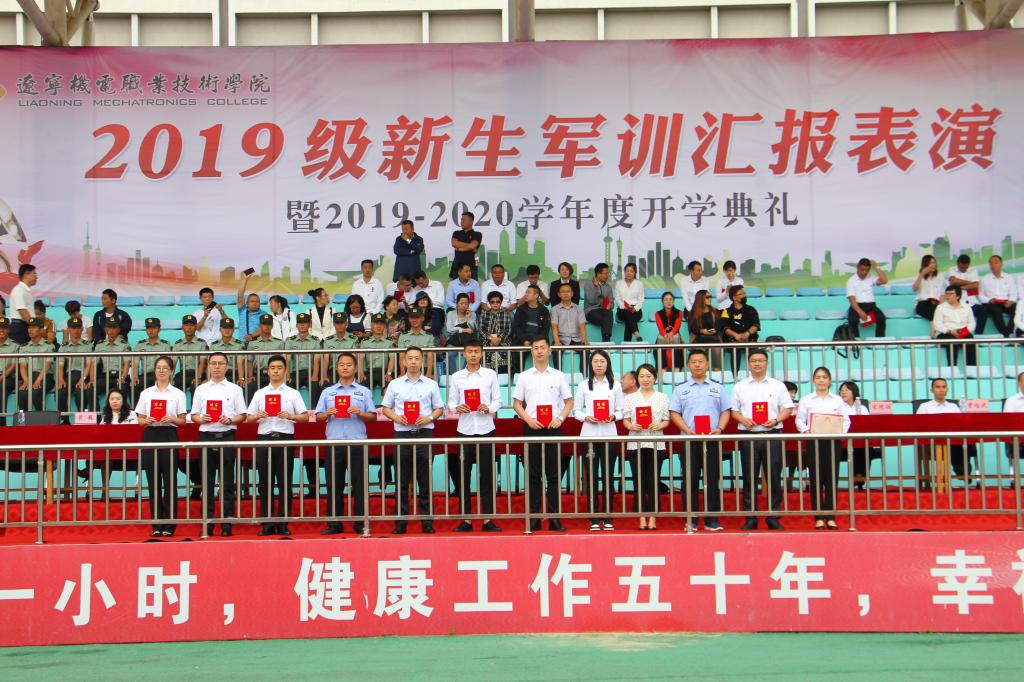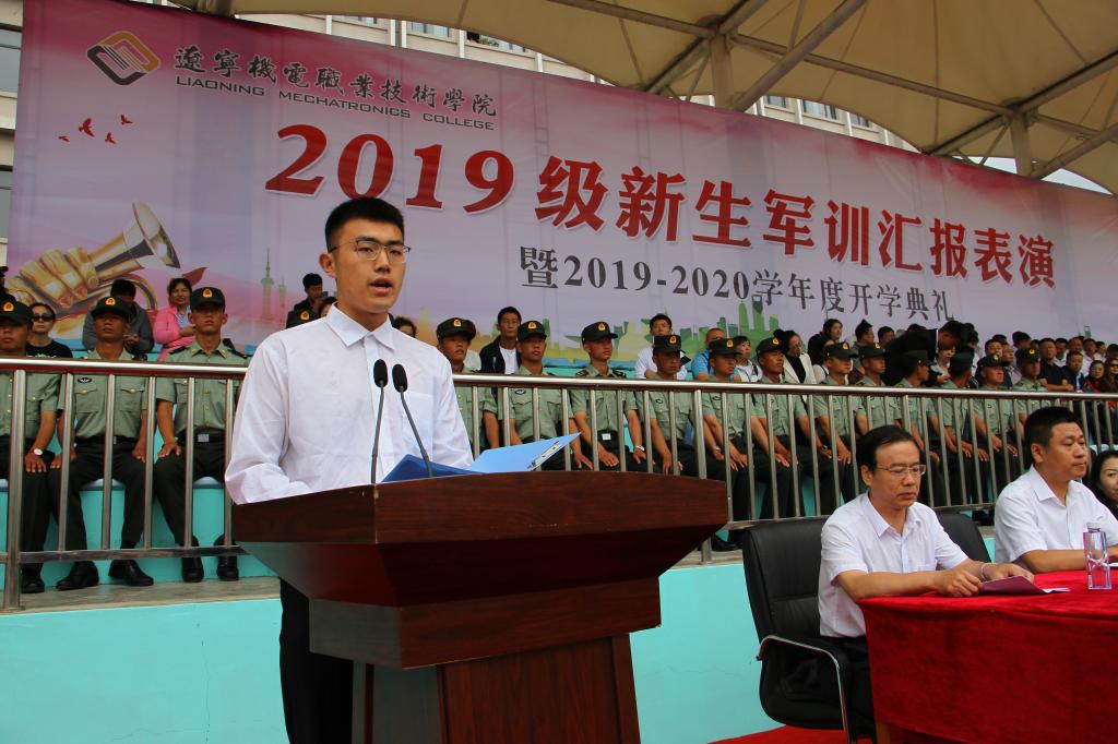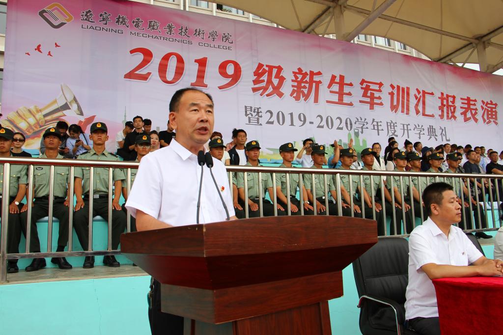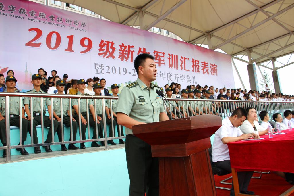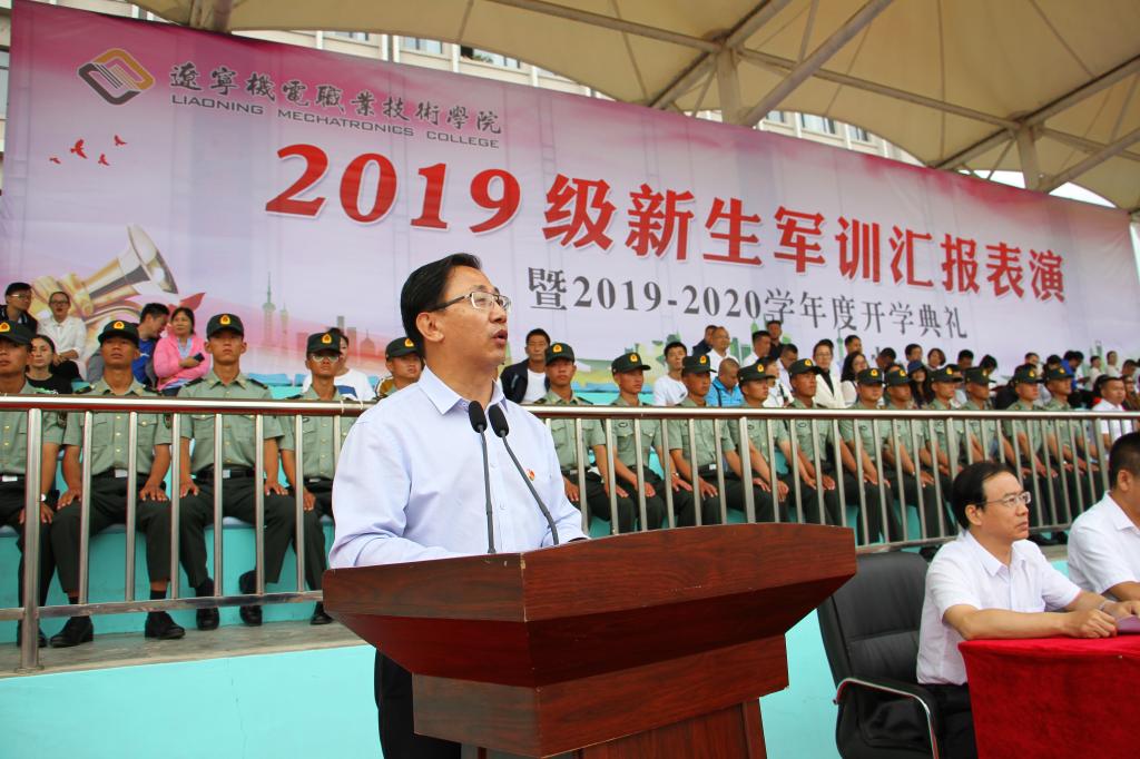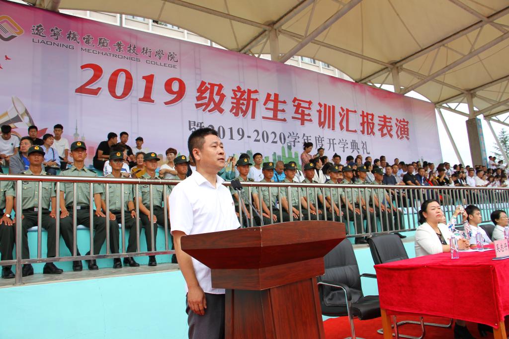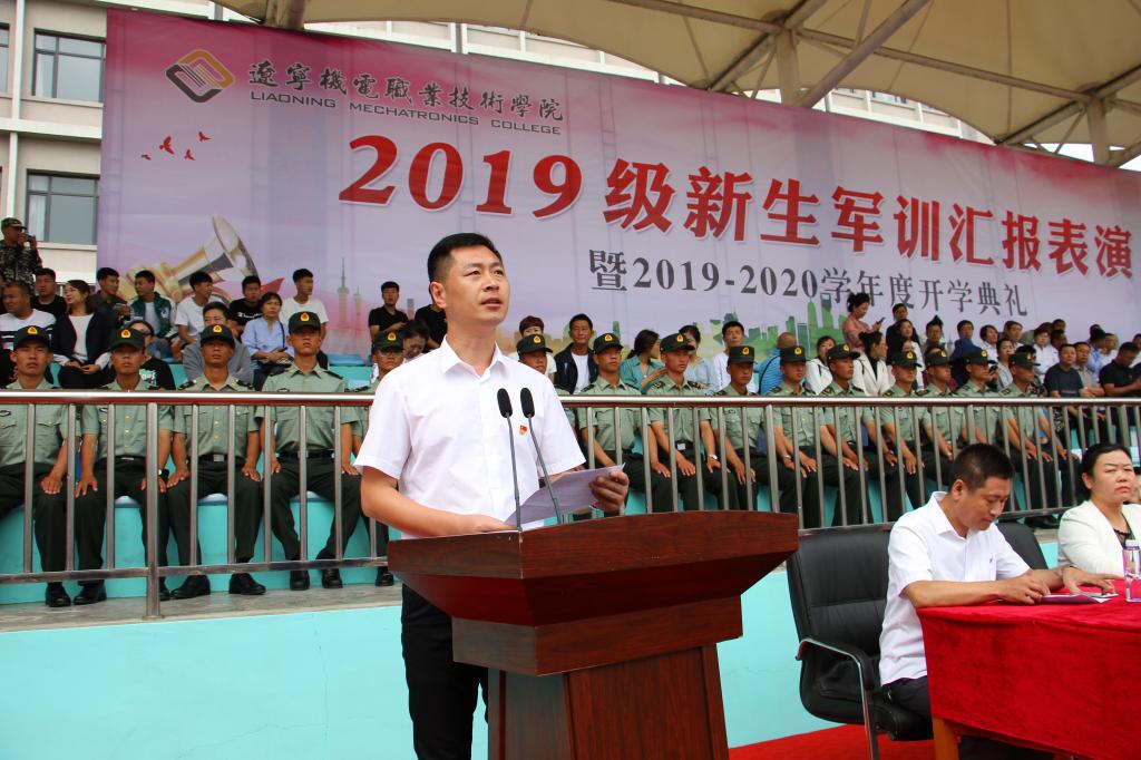 秋高氣爽,丹桂飄香,9月12日上午10:00,我院2019級軍訓(xùn)匯報(bào)表演暨2019—2020學(xué)年度開學(xué)典禮在儀表園校區(qū)體育場如期舉行。65735部隊(duì)管理科科長劉紅喜,學(xué)院黨委書記王忠誠,黨委副書記、紀(jì)委書記陳秋鵬,副院長趙景暉,副院長佟海軍,教務(wù)處長,學(xué)生處長,各院系黨總支書記,教師代表及家長委員會副主任主席臺就坐。全體輔導(dǎo)員、2019級新生班級全體班導(dǎo)師、家長委員會成員、各類先進(jìn)代表以及2019級2900余名新生參加此次大會。