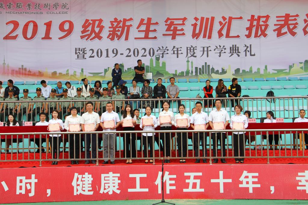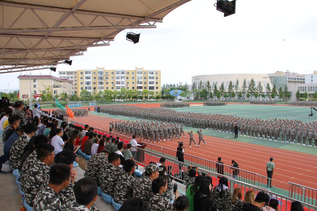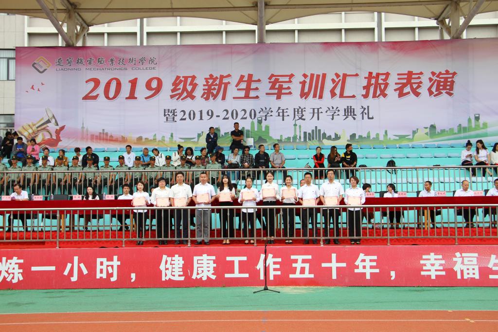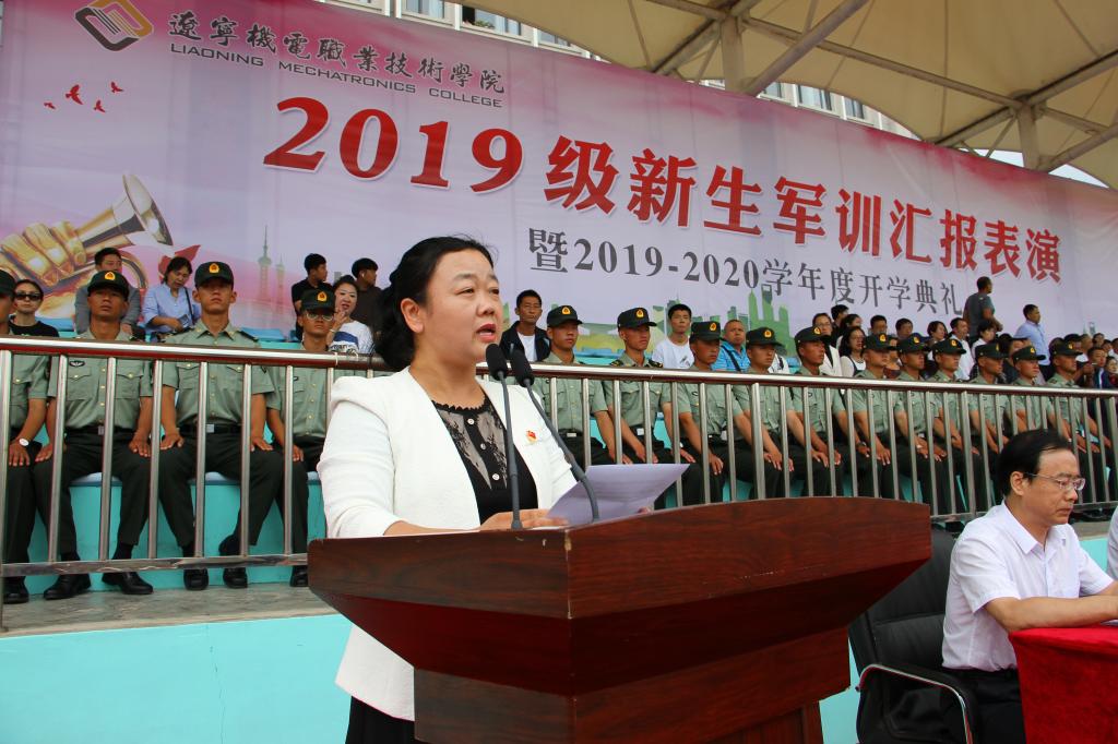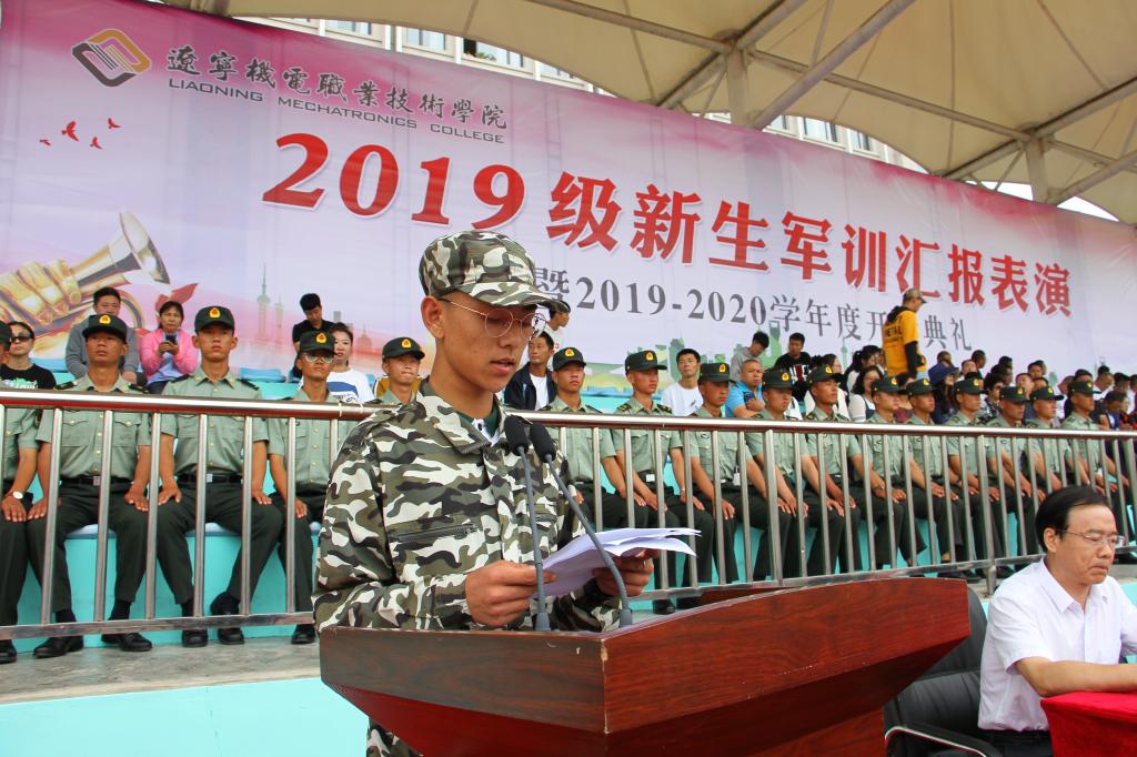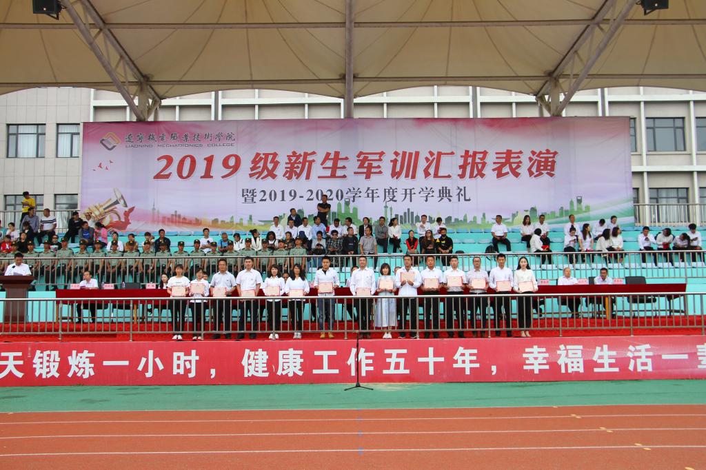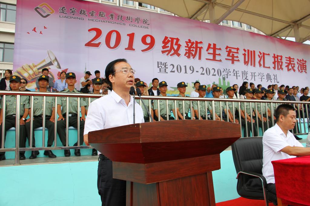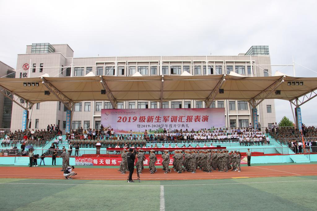 秋高氣爽,丹桂飄香,9月12日上午10:00,我院2019級軍訓(xùn)匯報(bào)表演暨2019—2020學(xué)年度開學(xué)典禮在儀表園校區(qū)體育場如期舉行。65735部隊(duì)管理科科長劉紅喜,學(xué)院黨委書記王忠誠,黨委副書記、紀(jì)委書記陳秋鵬,副院長趙景暉,副院長佟海軍,教務(wù)處長,學(xué)生處長,各院系黨總支書記,教師代表及家長委員會副主任主席臺就坐。全體輔導(dǎo)員、2019級新生班級全體班導(dǎo)師、家長委員會成員、各類先進(jìn)代表以及2019級2900余名新生參加此次大會。