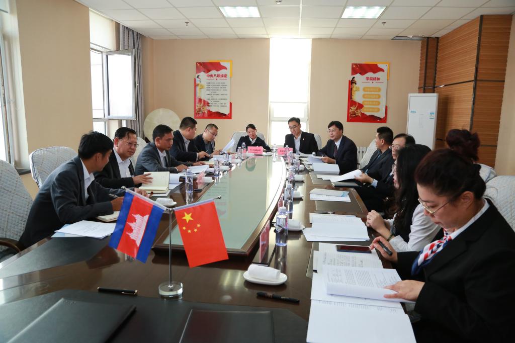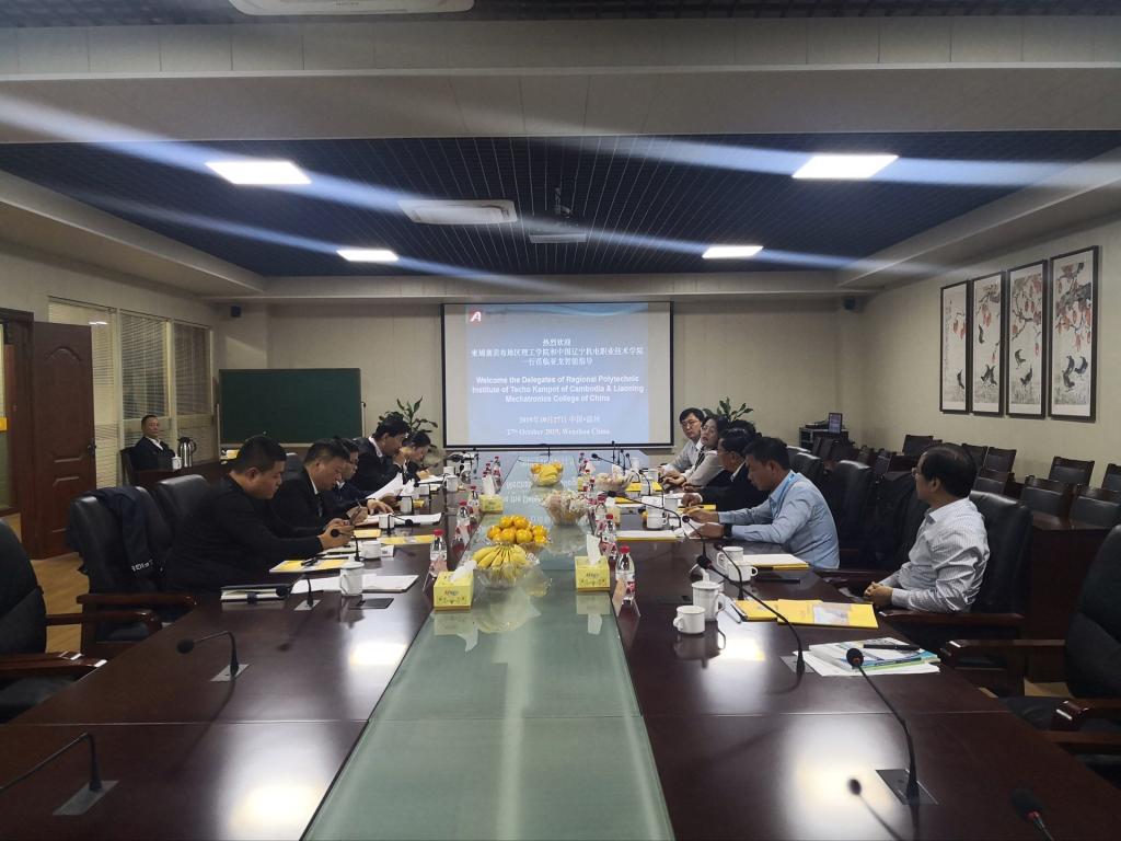為了深度融入共建“一帶一路”,建設開放合作新高地,促進中柬兩國人才培養(yǎng)及交流,加快推進柬埔寨遼寧機電職業(yè)技術學院亞龍絲路學院建設,建成我院第一所海外分校。2019年10月23日下午,柬埔寨貢布地區(qū)理工學院、亞龍智能裝備集團股份有限公司和遼寧機電職業(yè)技術學院三方在我院行政中心902會議室舉行了中柬職業(yè)教育人才培養(yǎng)研討會暨柬埔寨遼寧機電職業(yè)技術學院亞龍絲路學院建設工作會議。柬埔寨貢布地區(qū)理工學院院長克容·金朗、副校長蔡·卓男、行政辦公室副主任本·薩姆洛特,亞龍智能裝備集團股份有限公司區(qū)域總經(jīng)理毛衛(wèi)祥、辦公室主任徐偉東,我院黨委書記王忠誠、副院長趙景暉及外事辦、自控系、基礎部等部門領導出席了會議。