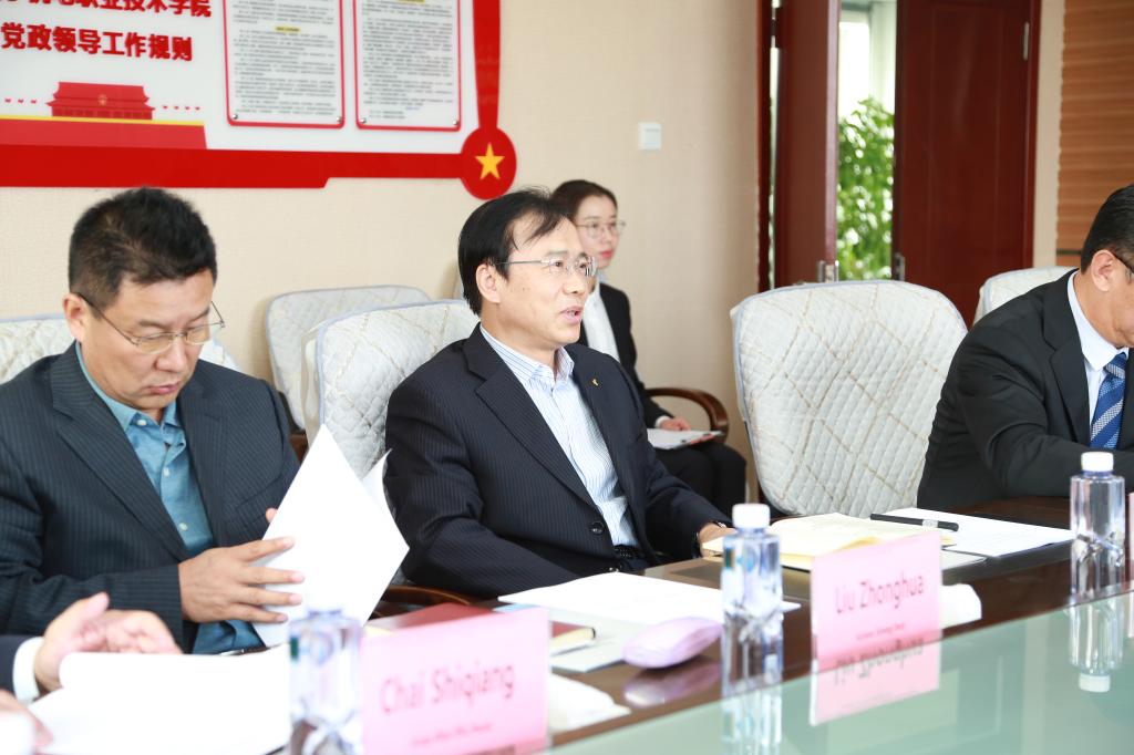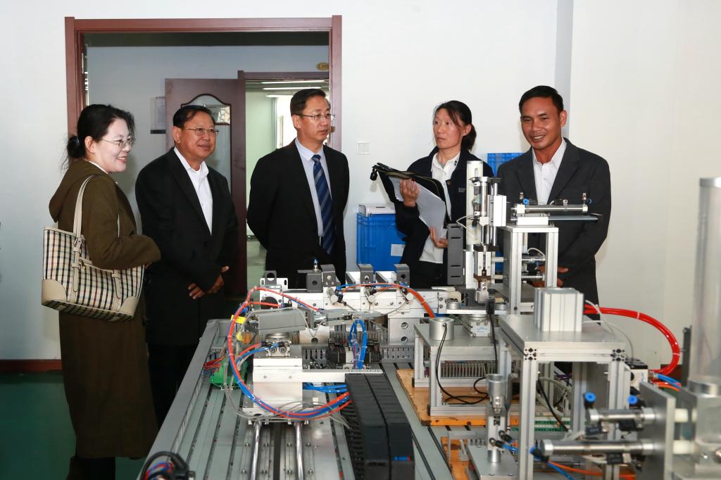 會前,黨委書記王忠誠教授與柬埔寨貢布地區(qū)理工學院校長克容?金朗親切會面,并陪同柬埔寨貢布地區(qū)理工學院及亞龍智能裝備集團股份有限公司代表共同參觀了學院校園環(huán)境、相關實訓基地和實訓室,使各位來賓和代表進一步了解了我院辦學情況和專業(yè)實訓基地的建設情況,為會議的順利召開打下基礎。