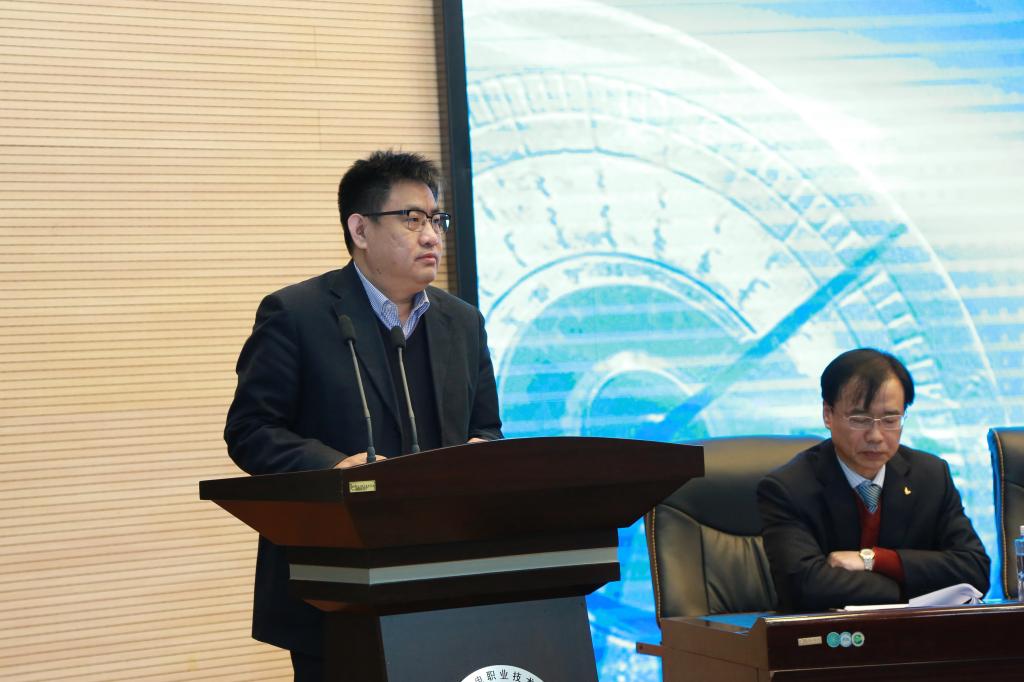 遼寧機(jī)電職業(yè)技術(shù)學(xué)院副院長(zhǎng)代表第二屆理事會(huì)做集團(tuán)第二屆理事會(huì)工作報(bào)告