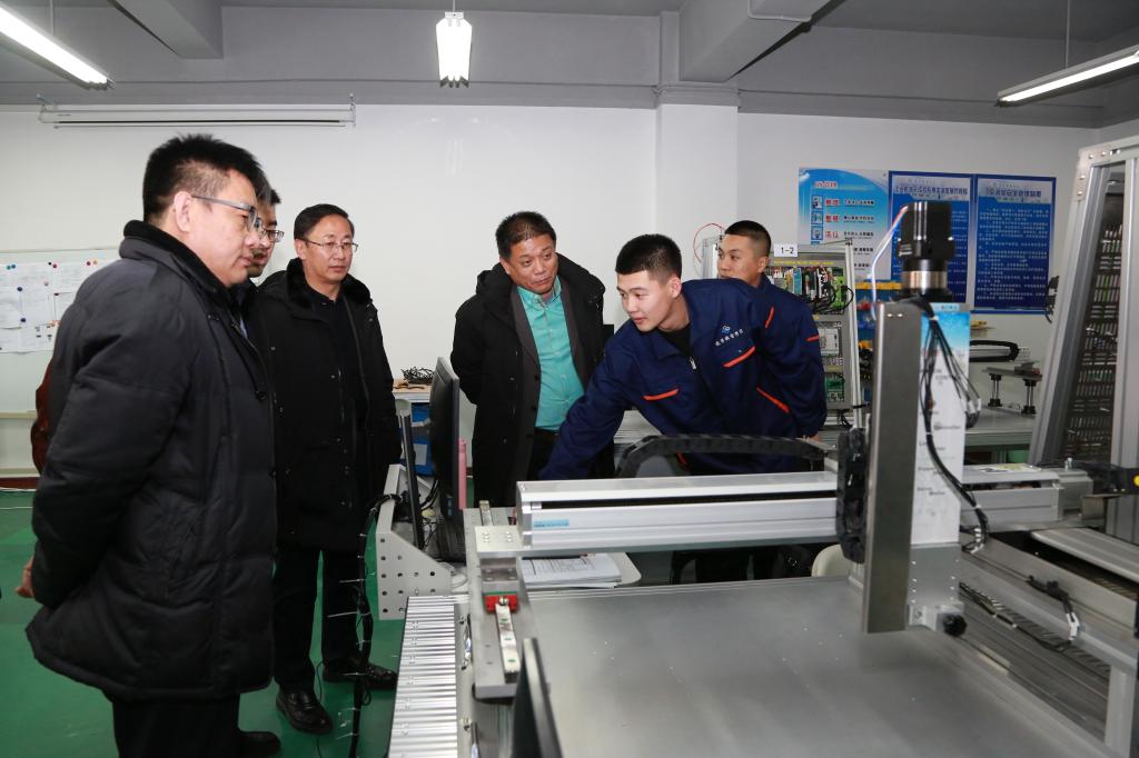 陳曉明主任一行參觀了學院智能制造生產(chǎn)性實訓基地、創(chuàng)新創(chuàng)業(yè)學院、機器人創(chuàng)新實踐中心、柔性制造創(chuàng)新實訓中心、自動化技術、虛擬儀器技術等校企協(xié)同創(chuàng)新中心并與現(xiàn)場的師生進行了親切交流。