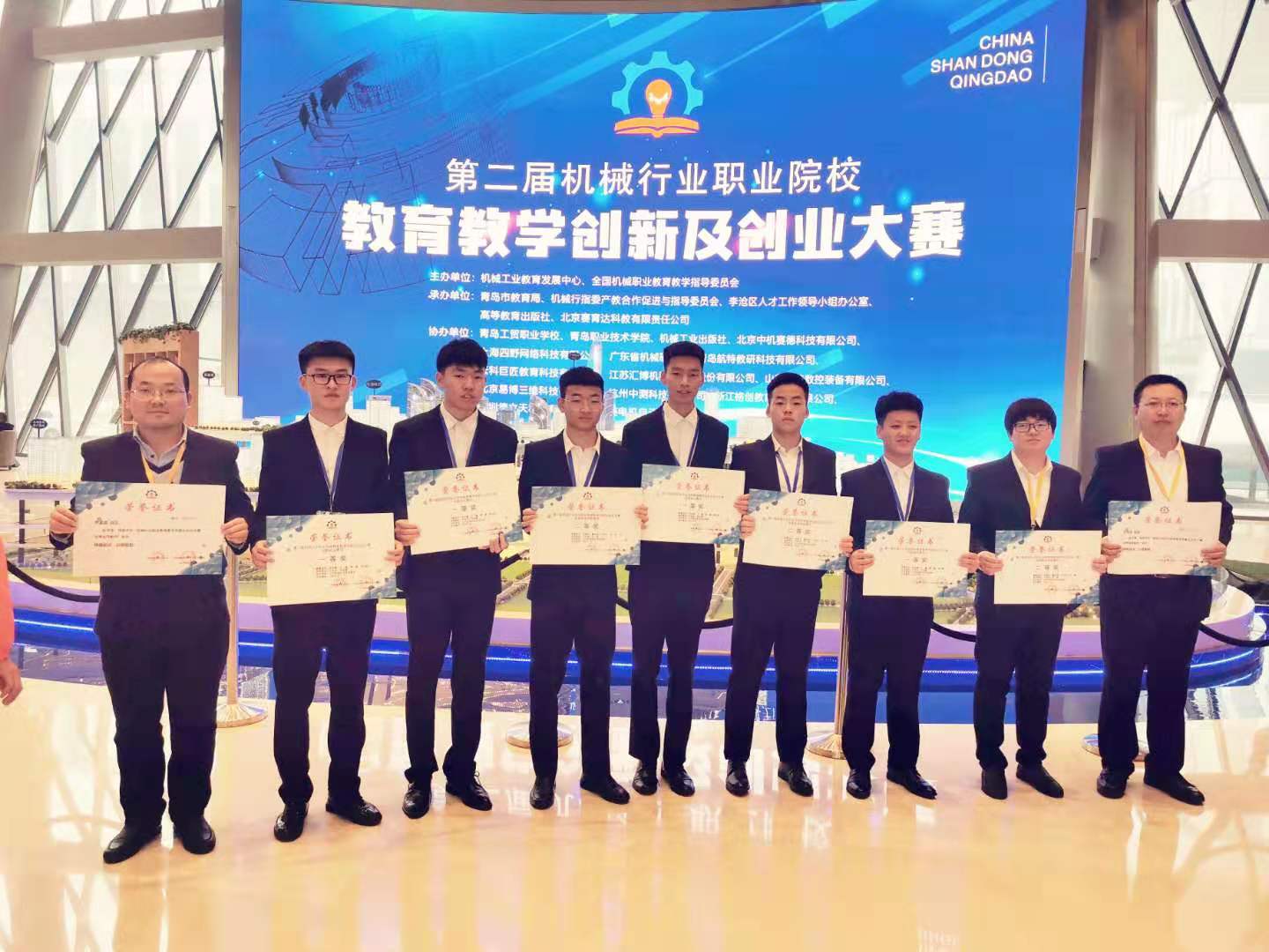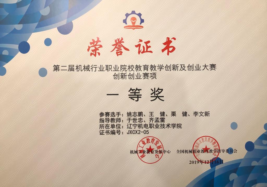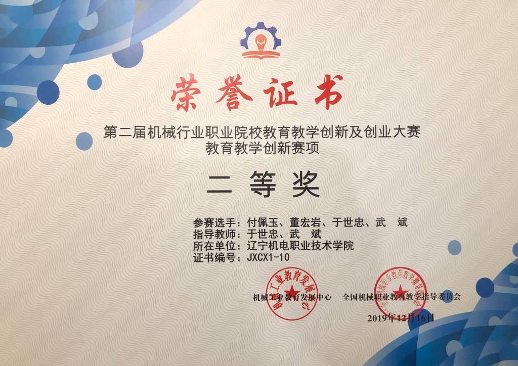 12月13日-16日,第二屆全國機械行業(yè)職業(yè)院校教育教學創(chuàng)新及創(chuàng)業(yè)大賽決賽在山東青島舉行,由機械工程系于世忠、武斌、齊孟雷三位教師和姚志鵬、付佩玉、王健、栗健、李文新、董宏巖六名學生組成的我院代表隊發(fā)揮出色,榮獲創(chuàng)新創(chuàng)業(yè)賽項一等獎(總分第1名)、教育教學創(chuàng)新賽項二等獎,同時于世忠、齊孟雷在創(chuàng)新創(chuàng)業(yè)賽項中獲得優(yōu)秀指導教師榮譽稱號。
