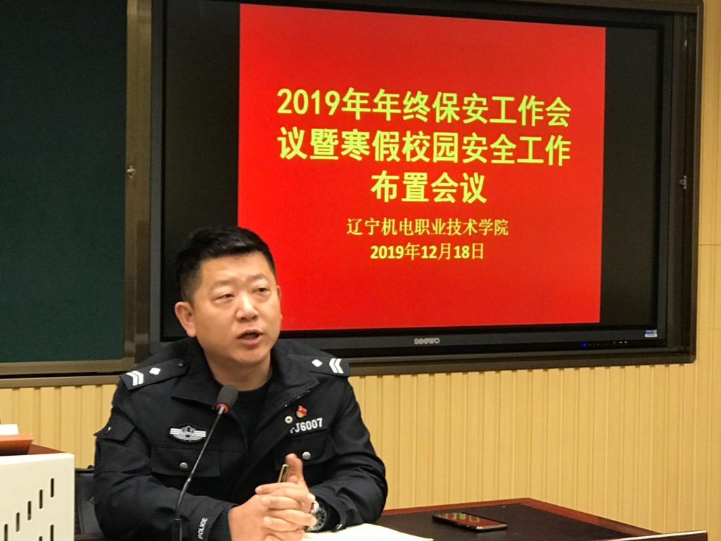 12月18日上午,學院在展覽中心錄播廳組織召開2019年年終保安工作會議暨寒假校園安全工作布置會議。安保部部長肖增啟和安保部全體老師出席,全體保安隊員參加會議。