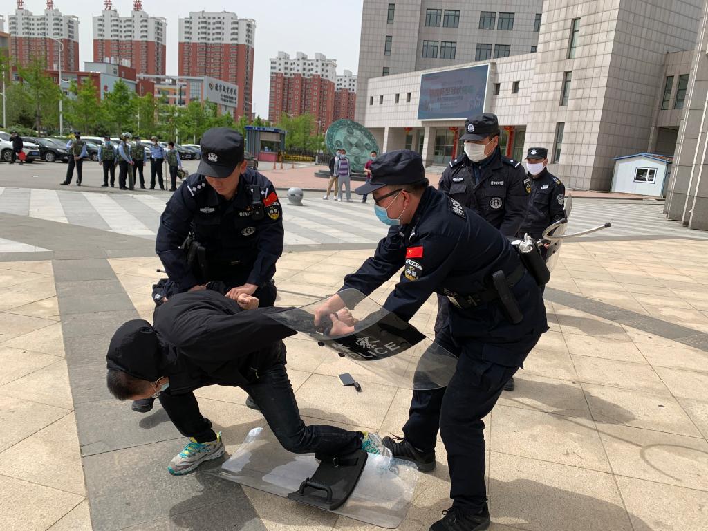 為有效防范公共場所可能發(fā)生的暴力恐怖事件,加強安全防范意識,提高對突發(fā)事件的應(yīng)急處置能力,確保兩會安保期間社會秩序和校園安全穩(wěn)定,5月14日上午,我院聯(lián)合丹東市公安局反恐支隊、合作區(qū)分局,在學(xué)院門前廣場模擬兩名暴恐分子砍殺群眾的反恐實戰(zhàn)演練。