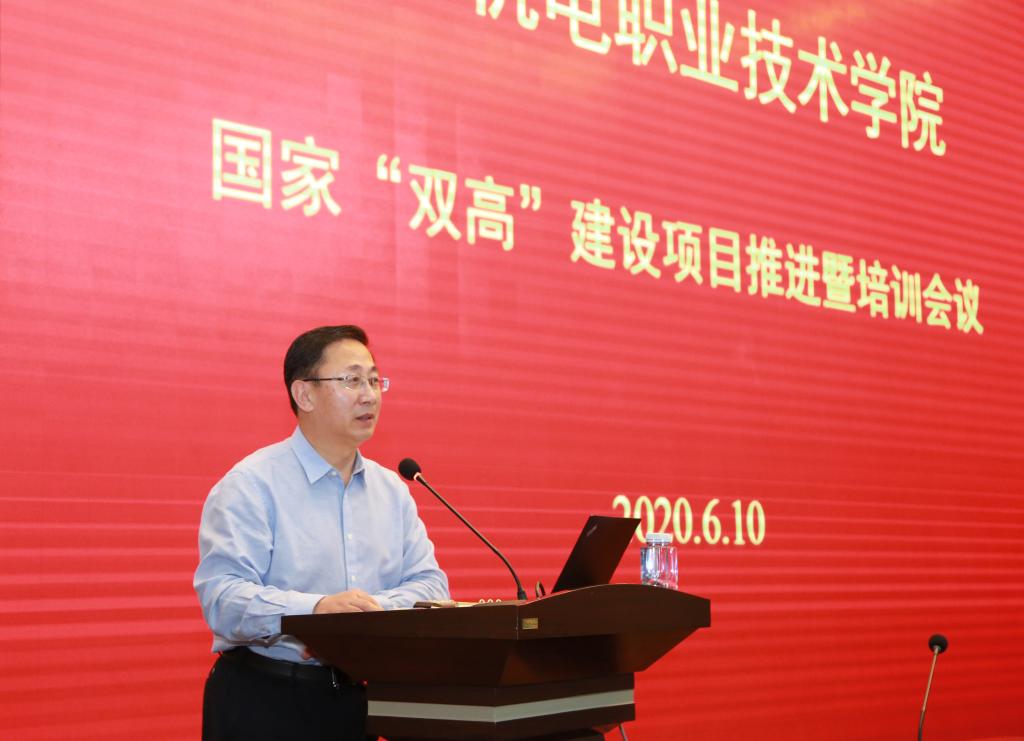 為切實推動學(xué)院國家“雙高”項目建設(shè)進程,明確“雙高”建設(shè)組織架構(gòu),準(zhǔn)確把握項目建設(shè)方向,促進學(xué)院內(nèi)涵建設(shè)和高質(zhì)量發(fā)展,6月10日上午,學(xué)院國家“雙高”建設(shè)項目推進暨培訓(xùn)工作會議在大學(xué)生素質(zhì)教育中心四樓報告廳召開。黨委書記王忠誠,黨委副書記、院長于宏國,黨委副書記、紀(jì)委書記陳秋鵬,副院長趙景輝,副院長佟海軍出席會議,會議由發(fā)展規(guī)劃處處長沈會超主持。