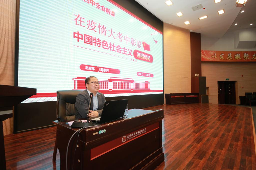 思政部教師周家興主講“在疫情大考中彰顯中國特色社會主義制度優(yōu)勢”